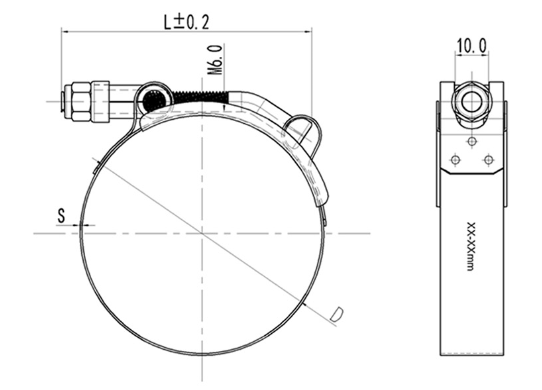 This type of clamp conforms to SAE standard J1508 Type TB.
